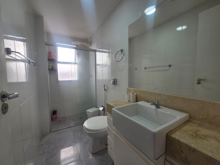 Apartamento amplo e equipado: com cozinha, banheiros e área de serviço compartilhados.